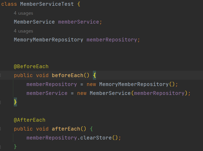 ② MemberServiceIntegrationTest 클래스 내에 코드를 작성한다.