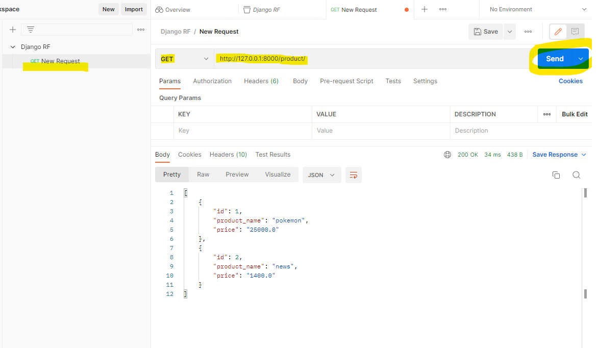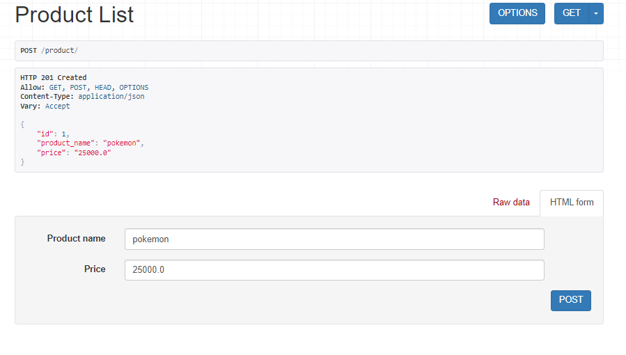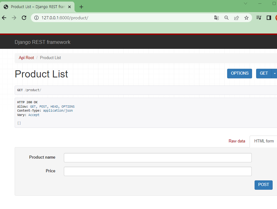 'product' 와 ProductViewSet 을 연결해서 실제 경로를 통해 API 요청을 주고받을 수 있다.