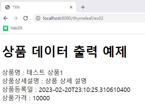 Thymeleaf 문법이 추가되어도 html 파일이 깨지지 않고 정상적으로 출력됨을 확인할 수 있다.