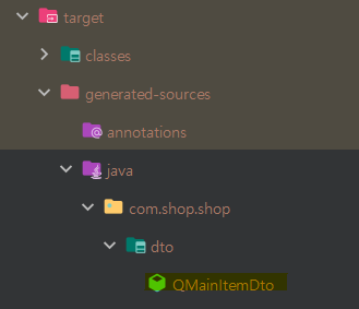 컴파일 결과 QMainItemDto가 생성된 것을 확인할 수 있다.
