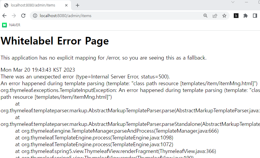 현재 상품 관리 페이지로 가면 볼 수 있는 화면이다. 렌더링이 안되는 것 같은데 이유를 모르겠다.