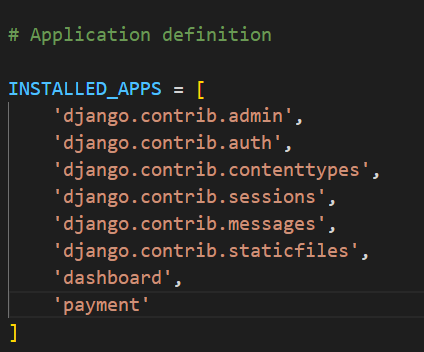 INSTALLED_APPS : 생성한 application를 이 곳에 적어야 한다.
