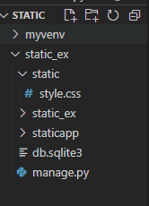 이 명령어를 실행하고 나면 'staticfiles'가 생성된 것을 확인할 수 있다.