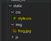 6. 새로 만든 static 폴더 안에 style.css 파일을 생성하고, 이미지 파일을 불러온다.