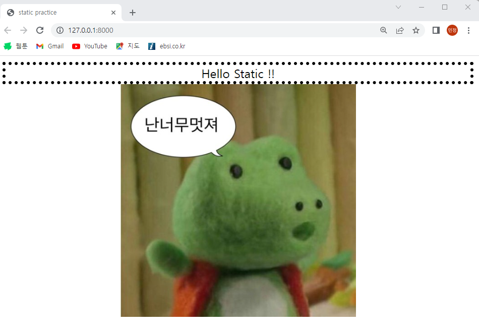 최상위 디렉토리인 베이스 디렉토리 아래에 static이라는 폴더를 생성하여 static 파일들을 생성한다는 뜻이다.
