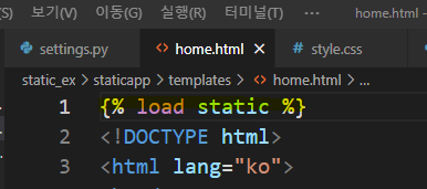 우리가 만든 html 파일에 설정하고 만든 static 파일을 갖고와서 쓸 수 있어야한다.