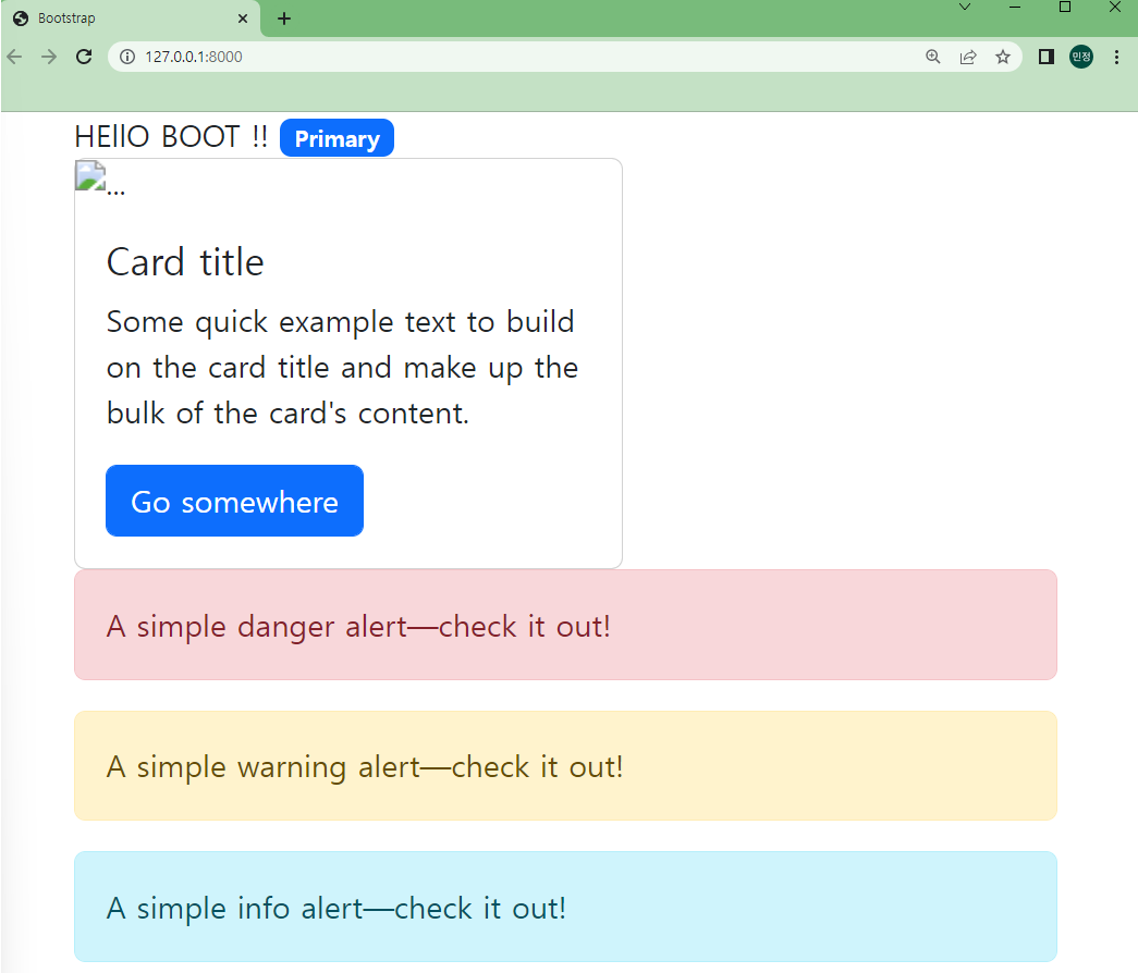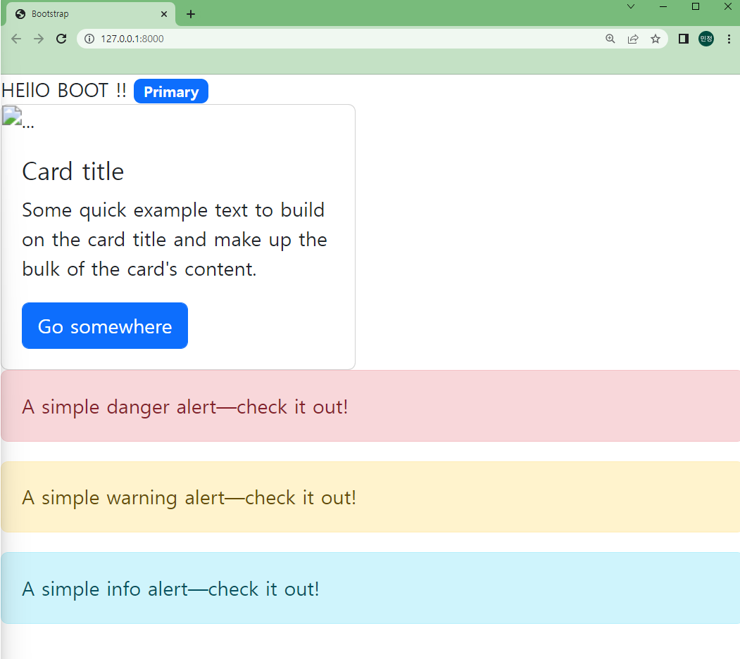 home.html 파일에 bootstrap 사이트를 참고하여 여러 태그를 달아준다.
