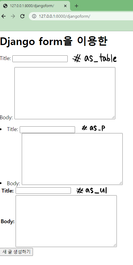 <h1>Django form을 이용한 </h1>