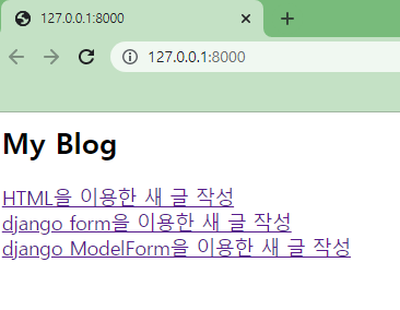 <a href="{% url 'modelform' %}">django ModelForm을 이용한 새 글 작성</a>