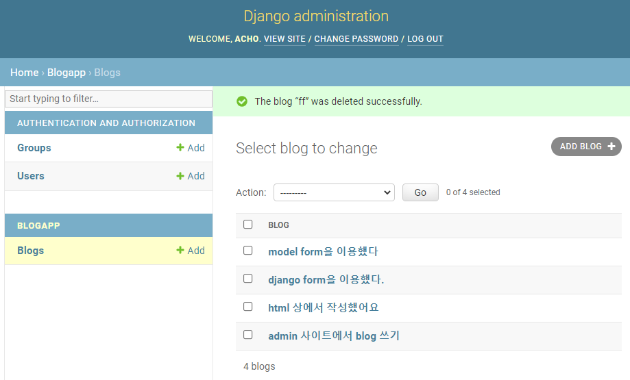 #django modelform을 이용해서 블로그 객체 만들기
