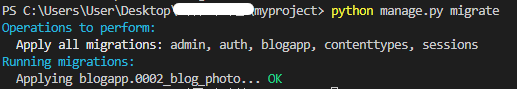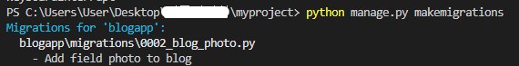 media 파일을 업로드할 수 있는 모델을 새로 생성했으므로 변경사항이 담긴 파일을 만들어준 후,