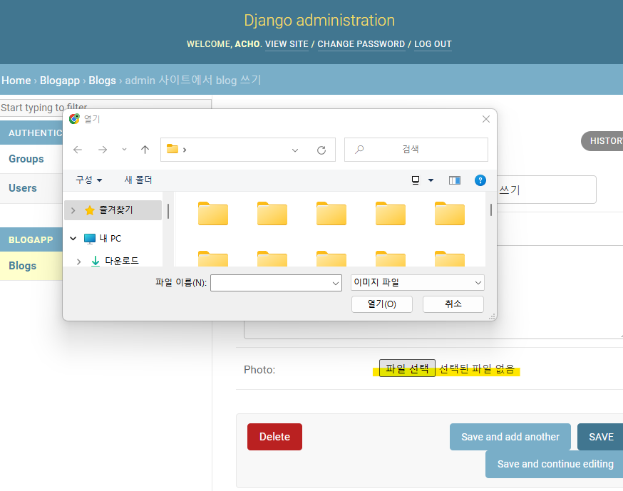 [멋쟁이사저처럼10기] Django 블로그 만들기(파일 업로드) 본문
