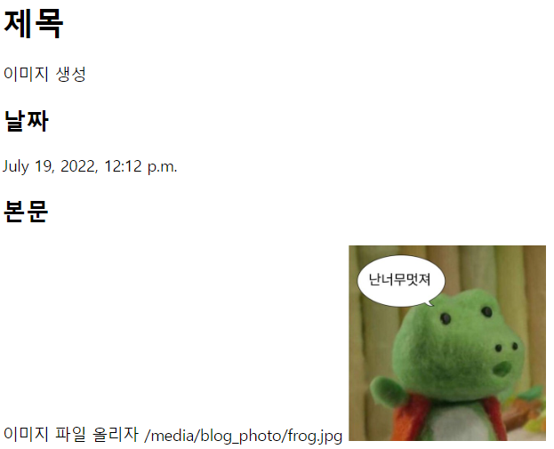 따라서 detail.html 코드에서 아래 작업을 해주면, 우리가 올린 이미지를 생성된 글 url에서 확인할 수 있다.