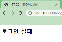 옳지 않은 아이디나 비번을 입력할 시, 로그인 실패라는 url로 이동하게 된다.
