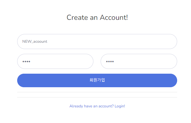 - 'Create an Account! ' 를 클릭했을 때 signup이라는 url로 이동한다.