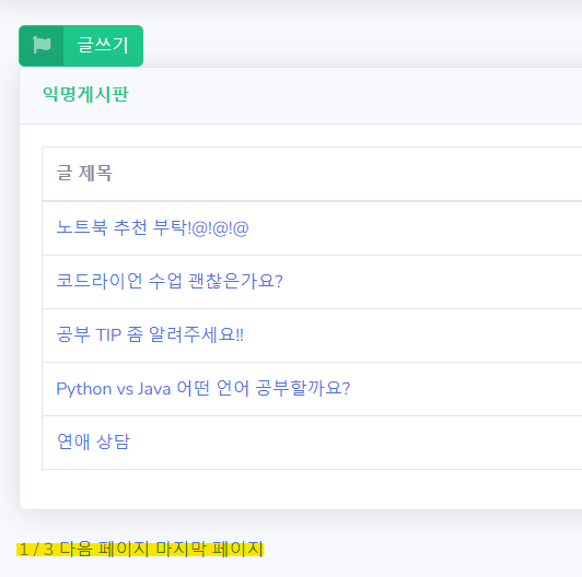 [멋쟁이사자처럼10기] Django 개발자 대나무숲 프로젝트(Pagination) 본문