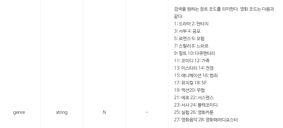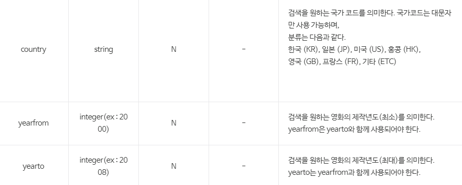https://openapi.naver.com/v1/search/movie.json?genre=2&country=KR
