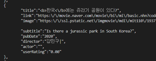 영화 API 사용해서 '한국' 키워드 영화 검색