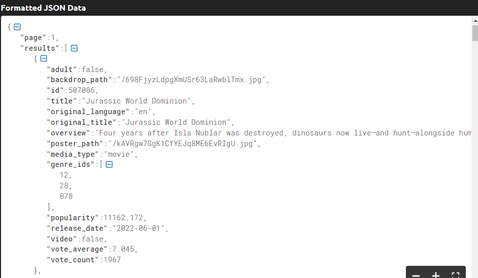 - Formatted JSON Data를 확인해서 가져오고 싶은 데이터만 정리하면 된다.