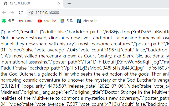 영화 하나하나에 대한 정보가 리스트 형식으로 가져온 걸 볼 수 있다.