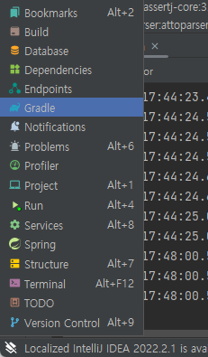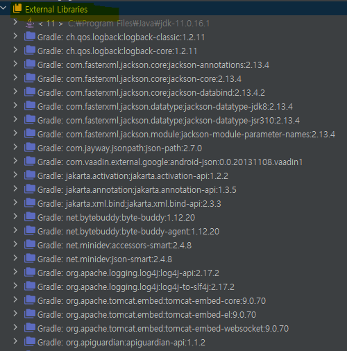 gradle를 선택해서 의존 관계에 따른 라이브러리를 파악해보자.