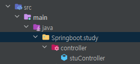 ▹java/Springboot.study 경로 하위에 controller 패키지를 생성해준다.