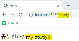 즉, 클라이언트가 /study로 url 요청을 하면 stuController의 value가 templates 폴더의 stu.html의 ${data}로 치환이 된다.