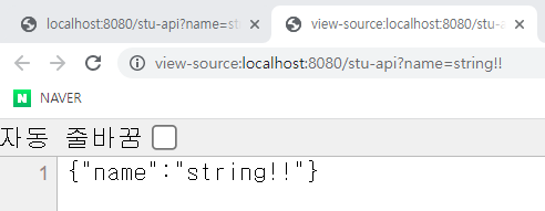 이렇게 HTTP Get 방식으로 name 파라미터 값을 넘겨주게 되면, 지정한 name 값으로 결과물을 볼 수 있다.