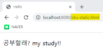 Controller에 GetMapping에서 stu-static.html이 아닌 stu-static일 경우,, localhost:8080/stu-static.html을 입력하면 static/stu-static.html로 이동한다.