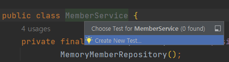 ③ MemberService 클래스 내의 코드를 작성해준다.